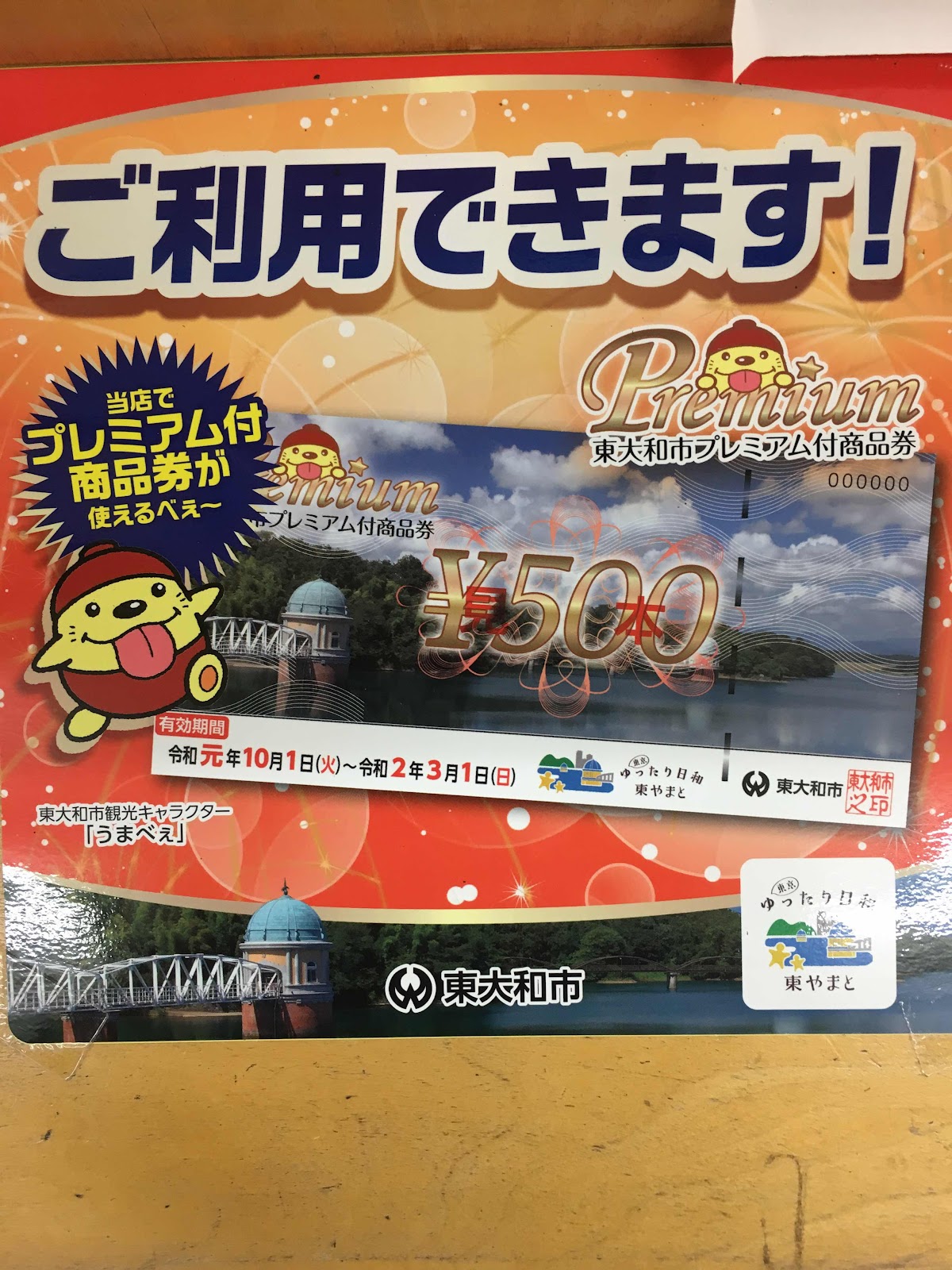 当店では、東大和市プレミアム付商品券がご利用可能です。