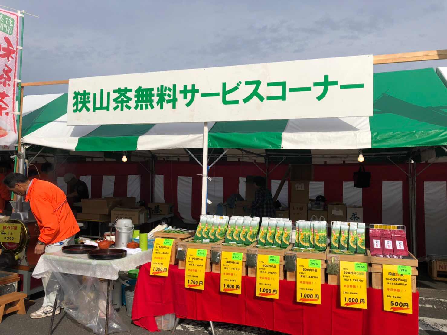 当店はお茶組合の一員として下の写真のブースで狭山茶、ほうじ茶、紅茶の販売と試飲サービスを行いました。