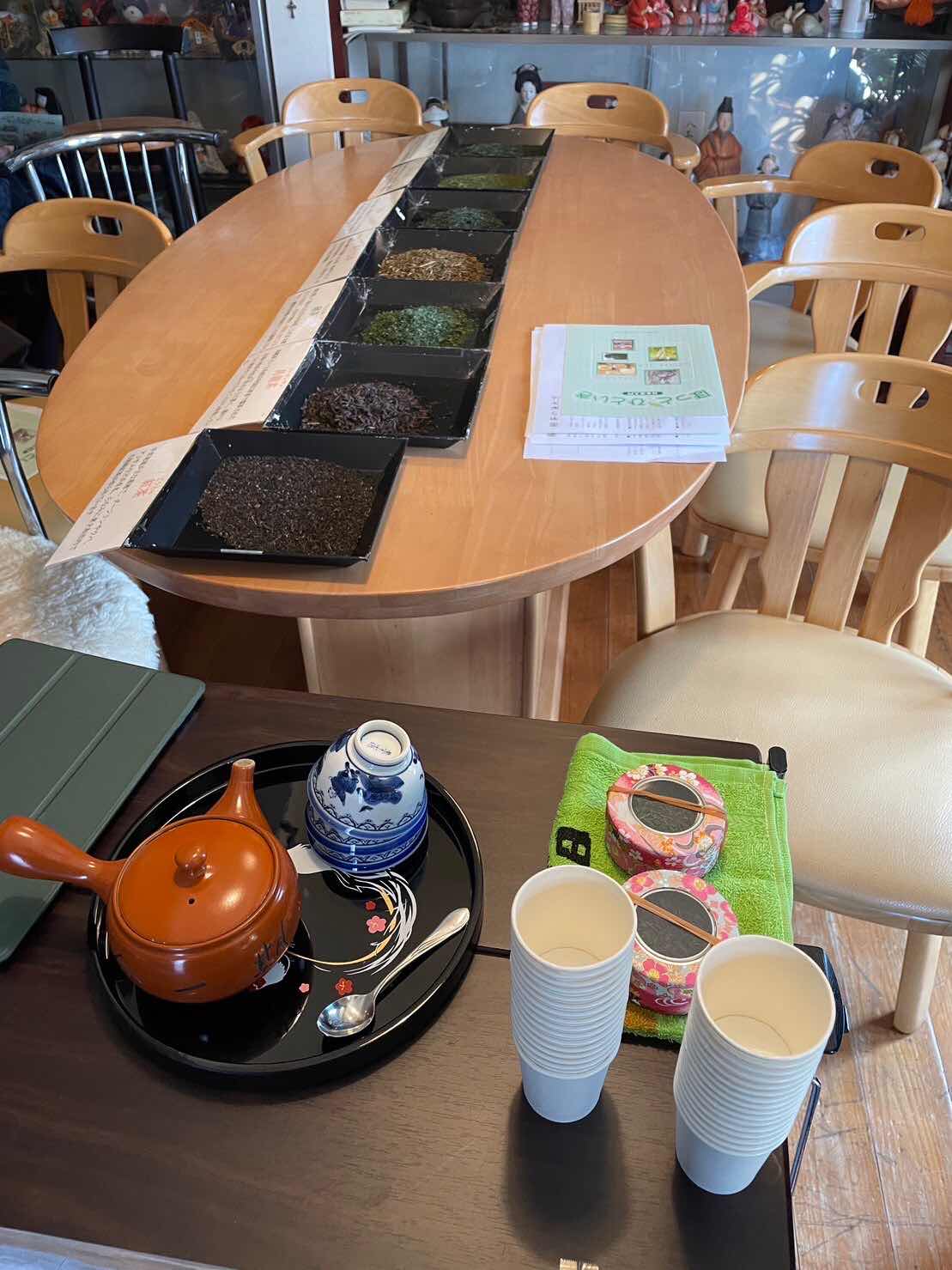 せっかくなので、お茶のサンプルも数種類展示して普段見かけないお茶についても説明いたしました。